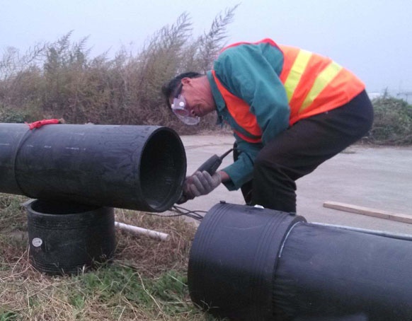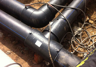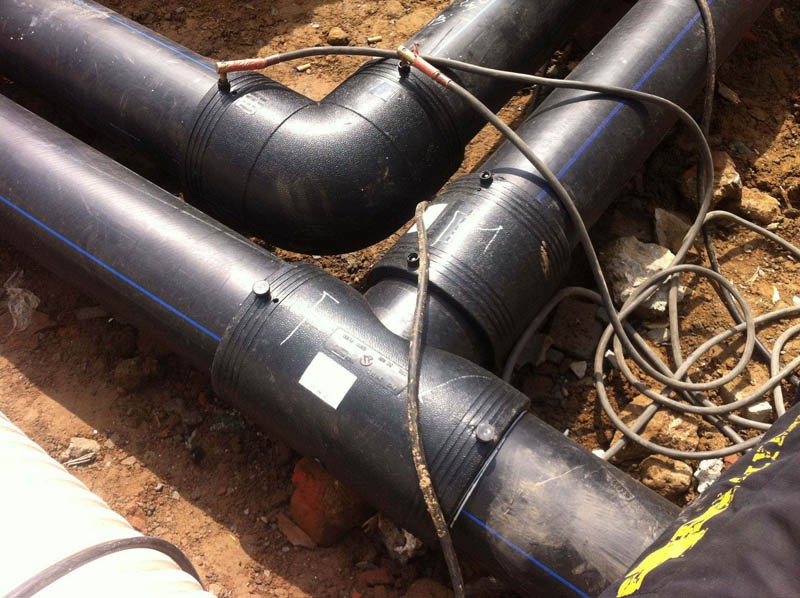 安裝工藝流程:備料—刮削氧化層—清潔焊接面—標(biāo)記承插深度—檢測管件線圈—轉(zhuǎn)配管件—檢查配合—固定連接處—管件編號—焊接—冷卻—局部回填—試壓驗收—整體回填